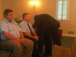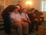 This past Sunday, we ordained three men as deacons at Port Royal Baptist Church. Josh Riley, Steve Michalski, and Danny Mallard were elected by the church to serve in this servant ministry. This is an important office in the New Testament church. Deacons are servants. Their office is not one of ruler, overseer, or financial manager. Instead it is a position of service and support. They are also to be examples to those around them. Their character and integrity is to be at the level that others may see Christ in their lives. Deacons are to be leaders as well. In the same way that pastors lead the congregation is spiritual development, deacons lead the congregation is physical development. I reminded our deacons that their model of leadership has been given to them by Jesus Christ, that model is to Love God and Love People. I am confident in these three men that they will serve the Lord and our church well. I am proud to be serving with them. Below are a few pictures of the service from Sunday.